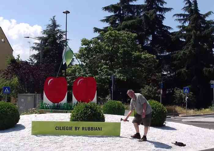 Lo aveva promesso e lo ha fatto davvero: Francesco Rubbiani, candidato a sindaco della lista “Città di Vignola”, ha inaugurato ieri mattina presso la rotonda di via Libertà il monumento alla ciliegia da lui stesso realizzato, sia per promuovere la sua lista civica (non a caso sotto al monumento campeggia la scritta “Ciliegie by Rubbiani”), sia per valorizzare il frutto più tipico di Vignola.