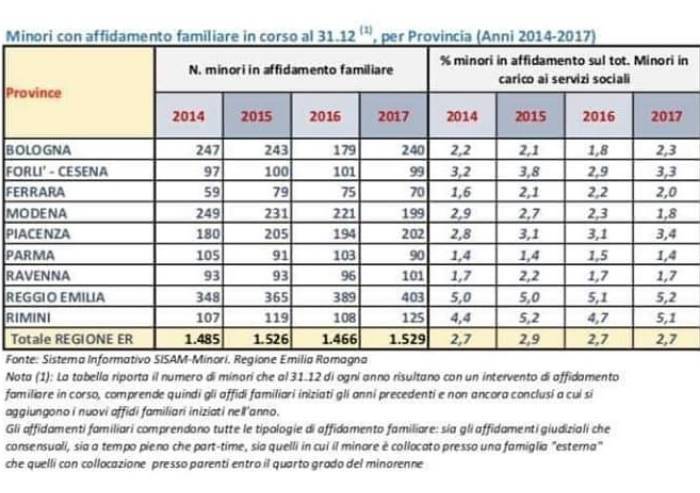 'E' possibile che a?Reggio il numero dei minori in affidamento (403 minori nel 2017, contro ad esempio i 90 di Parma) fosse sempre in aumento?'