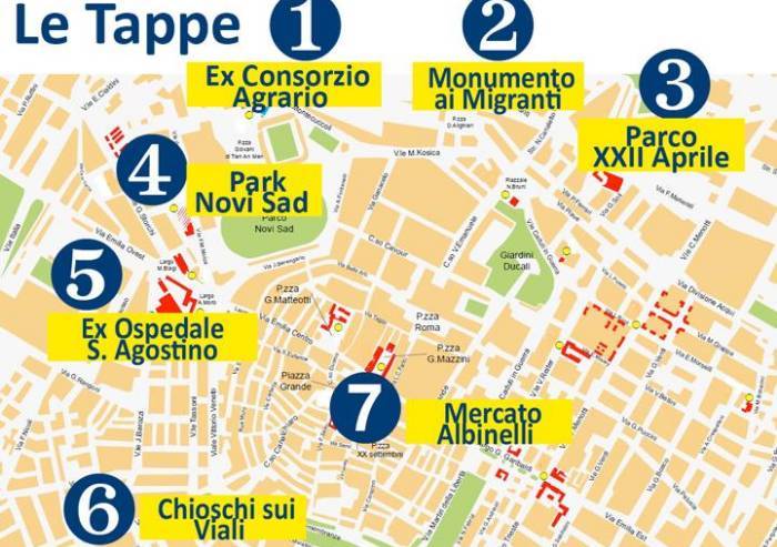 'Ex Consorzio agrario, monumento ai migranti, parco XXII aprile, Novi Sad, ex Sant'Agostino, Mercato Albinelli, Chioschi al parco: sono queste le sette tappe emblematiche del percorso attraverso il quale il sindaco Muzzarelli e la giunta Pd in questi anni ha preso in giro i cittadini. E noi la mattina di domenica 28 aprile lo ripercorreremo in bicicletta'. A presentare la propria iniziativa elettorale sono i giovanardiani del candidato sindaco di Idea Luca Ghelfi. ' Sono tanti i motivi per cui è imperativo non rivotare questa giunta, ma queste sette tappe sono davvero esemplari. Penso ai 20 anni durante i quali il Comune ha tenuto bloccata l'area dell'ex Consorzio agrario per non far approdare Esselunga o al degrado che regna sovrano al parco XXII aprile e nella zona dei Chioschi, ma anche a un piano Sosta che penalizza i modenesi e appaltato per decenni a un privato. I modenesi alle urne pensino a queste brutture e mandiamo a casa insieme la giunta Muzzarelli' - chiude Ghelfi.