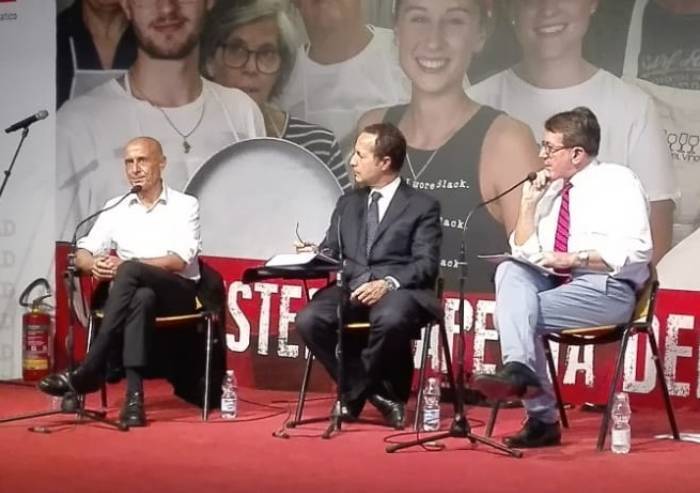 Un giro tra gli stand e le cucine che per lui hanno garantito, l'apertura straordinaria della festa, anche il lunedì, giorno di chiusura. Seguito da una serie di abbracci di sorrisi e di sguardi di intesa durati più due ore con il dichiaratamente 'amico' e politicamente 'compagno' Giancarlo (Muzzarelli). L'ex ministro, sul palco della festa, che chiama compagni anche gli intervenuti in platea e non manca di ricordare la sua estrazione 'comunista'. Una estrazione 'comunista e di sinistra' che, nonostante quella che lui stesso giudica 'la più grande e più bruciante sconfitta elettorale incassata nelle ultime elezioni' - anche sui temi dell'immigrazione e della sicurezza prova a proporre, o almeno ricordare, la propria ricetta, la propria formula.