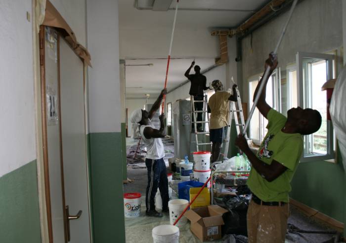 Quattordici le aule ridipinte alle don Milani, insieme ad alcuni spazi comuni, mentre alle Guidotti i lavori di tinteggiatura hanno interessato 18 aule, oltre a tutti i laboratori, i corridoi e le scale, per un totale di oltre 3.000 metri quadrati di superfici. Iniziati a giugno i lavori si sono svolti durante l’estate e complessivamente hanno visto impegnati oltre 130 genitori e 80 beneficiari dei progetti di accoglienza provenienti dai Cas di Modena (gestiti da Ceis, L’Angolo, Porta Aperta, Caleidos, Papa Giovanni XXIII e Pobic) coordinati dall’assessorato Welfare. Diversi volontari si sono particolarmente impegnati nell’attività, come Diamond e Draken che provengono dalla Nigeria e Alhassane arrivato dalla Costa D'avorio che hanno preso parte per oltre un mese all’iniziativa o Lamine del Gambia e Thierno del Burkina Faso che non hanno fatto mancare il loro assiduo contributo.