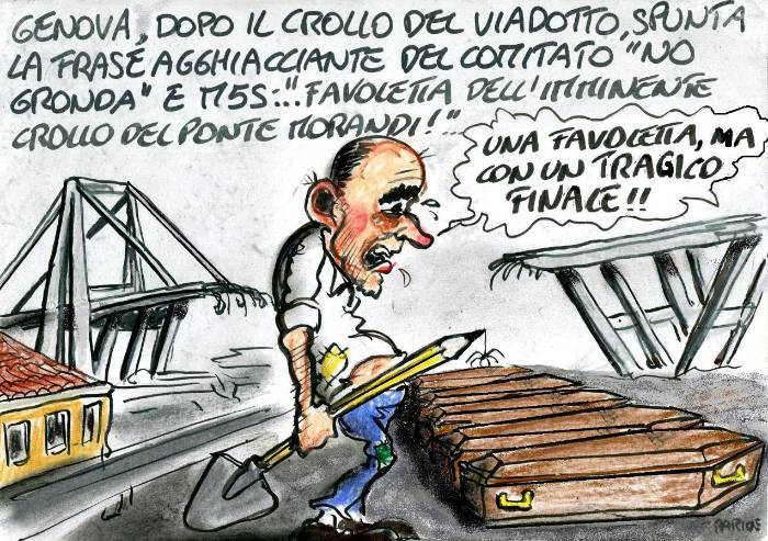A qualche ora dal crollo del Ponte Morandi rispunta il comunicato dei comitati 'No Gronda' ospitato nel 2013 sul sito M5S. 'Ci viene poi raccontata, a turno, la favoletta dell'imminente crollo del Ponte Morandi', dicevano in quella che oggi appare una frase agghiacciante. Una tesi che il consigliere pentastellato Paolo Putti aveva addirittura portato in consiglio comunale opponendosi allo 'sperpero di 5 miliardi di euro' per il rifacimento della Gronda di Ponente.
