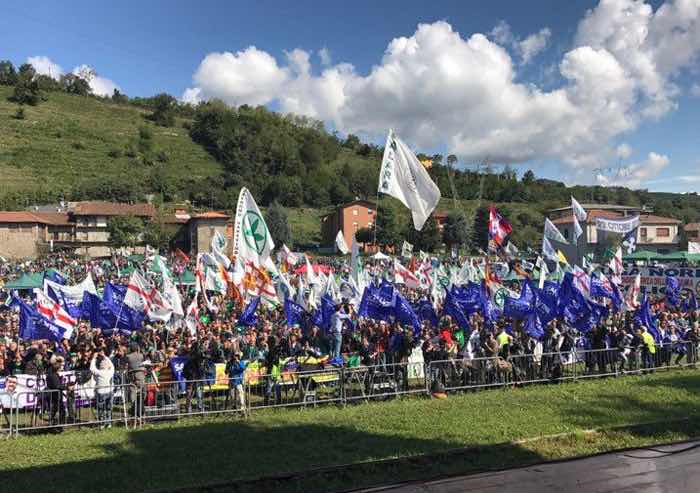 Si è concluso il raduno leghista di Pontida. Il segretario Matteo Salvini ha terminato da poco il suo intervento ringraziando i suoi predecessori, senza citare direttamente Umberto Bossi. 'Ho imparato molto da chi è venuto prima di me - ha detto Salvini -. Se siamo qua oggi è perché la Lega ha radici profonde, e ringrazio chi prima di me ha avuto onere e onore di essere segretario di questo meraviglioso movimento'. 'Dalle Alpi alla Sicilia riprendiamo in mano il nostro paese', ha chiesto il segretario ai militanti, prima di lasciare il palco e concedersi un ultimo bagno di folla.