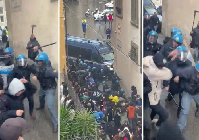 Le immagini delle cariche sugli studenti al corteo pro Palestina che si è tenuto ieri a Pisa sono divenute un caso politico. I video che circolano in rete sono impressionanti: gli studenti, pigiati contro la Polizia in un vicolo stretto, quando parte la carica cercano di indietreggiare. Ma in alcuni casi vengono rincorsi e colpiti violentemente con il manganello dagli agenti del Reparto mobile in tenuta antisommossa. Alcuni studenti sono stati fermati dalla Digos. In un video, si vede uno studente sdraiato fermato per un controllo.