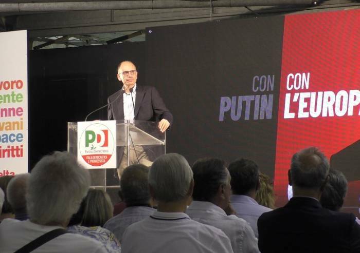 Per dimostrarlo, anche nel merito di alcuni provvedimenti, Letta sceglie un terreno scivoloso, la Flat Tax. Sul quale, non a caso, scivola. Cita l'esempio, come fosse suo, del conto al ristorante, dove persone diverse scelgono pietanze più costose le une e meno costose le altre per poi trovarsi a dividere il conto in parti uguali provocando una disuguaglianza sociale, e privilegiando chi ha scelto piatti più costosi (i ricchi), facendoli di fatto pagare a chi non se li può permettere. In tanti si accorgono che è la stessa storia diventata virale sui social ma che in modo altrettanto virale è stata bollata come sbagliata, nel metodo e nel merito. L'applauso, per questo, scatta tra pochi. Smorato. Anche nella prima fila, dove spiccano alcuni candidati in lista PD, da Barbara Lori a Enza Rando, che il segretario provinciale PD Solomita continua ad annunciare e promuovere come Vicepresidente nazionale di Libera.