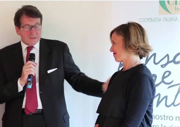 Nella foto il sindaco di Modena appena rieletto Gian Carlo Muzzarelli insieme alla presidente di Cir Food Chiara Nasi