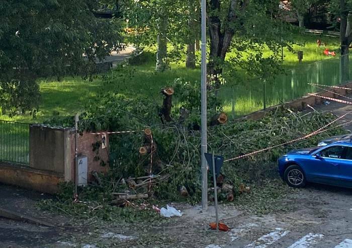 Un albero è caduto all’interno del cortile della scuola materna Pestalozzi di via Montegrappa a Modena, un episodio che arriva dopo il