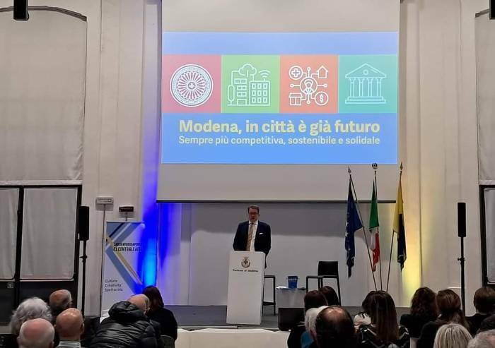 La presentazione del bilancio di mandato 2019-2024, con il sindaco Gian Carlo Muzzarelli e gli Assessori dell’Amministrazione comunale, è durata circa due ore, intervallata anche dagli interventi degli assessori e attraverso video proiettati. Il tutto accompagnato dallo slogan, che è il titolo anche della pubblicazione scaricabile dal sito del Comune “Modena, in città è già futuro. Sempre più competitiva, sostenibile e solidale”.