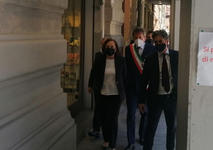 'Questo è un territorio concreto che va avanti e ha entusiasmo e con senso di squadra difende la sicurezza dei cittadini' - ha detto la Lamorgese. Doccia fredda per quanto riguarda la richiesta di elevare la questura in fascia A. 'Sulla questura, potrà essere rivista anche la fascia in futuro, ma certamente manderemo uomini in più, una trentina in più più 15 amministrativi tecnici' - ha aggiunto il ministro raccogliendo le richieste dei sindacati, promettendo anche rinforzi negli organici di polizia penitenziaria.