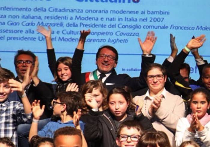 Sono 186 i ragazzini e ragazzine stranieri (nati in Italia da famiglie straniere) che oggi, al Forum Monzani di Modena hanno ricevuto la cittadinanza onoraria dal sindaco di Modena Giancarlo Muzzarelli e dalla presidente del Consiglio comunale Francesca Maletti, insieme all’assessore alla Scuola Gianpietro Cavazza.