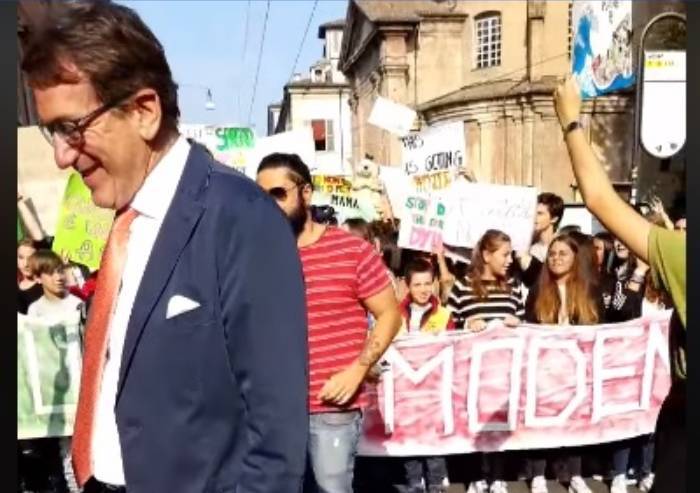 No, allora non può essere lo stesso sindaco quello che venerdì sfilava coi ragazzi. Che ne elogiava i cartelli colorati e che insieme a loro alzava il pugno in segno di vittoria.