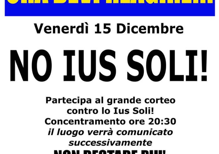 Coerentemente con quanto scritto sopra, esortiamo le Istituzioni ad impedire lo svolgimento del corteo contro lo Ius Soli, organizzato da soggetti la cui legittimità andrebbe verificata ai sensi della Legge n.645/1952 e della Legge n.205/1993.