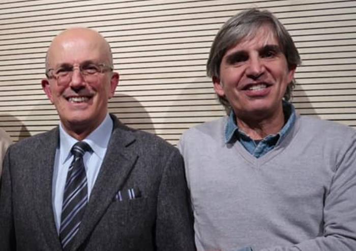 La faccenda ha preso una brutta piega. Son tutt’altro che arie e canzonette. Ci son certe regole a dir poco, strane, che son proprie di chi della politica dice d’intendersi. Se le cose, come pare, non cambiano, la Lega che pure ho votato, avrà sicuramente difficoltà . Sono intervenuto alcune volte precisando incaute e non veritiere (vedi il Coro stabile, o la mostra Mutina Splendidissima) errate prese di posizione leghiste, manifestando, al fine di non intervenire pubblicamente, disponibilità a parlarne con Luca Bagnoli (nella foto con Prampolini). Non condivido il programma culturale finora reso noto della Lega, e certe amicali scelte di candidatura. Per scelta, non sono un militante del Carroccio, ma un elettore, sì.