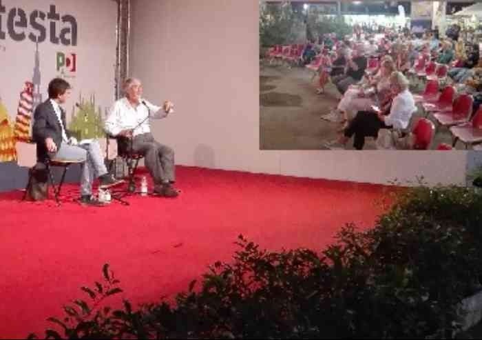 Il video: l'arrivo alla Festa, la sosta agli stand per salutare chi lavora e l'arrivo nella sala conferenze quasi deserta