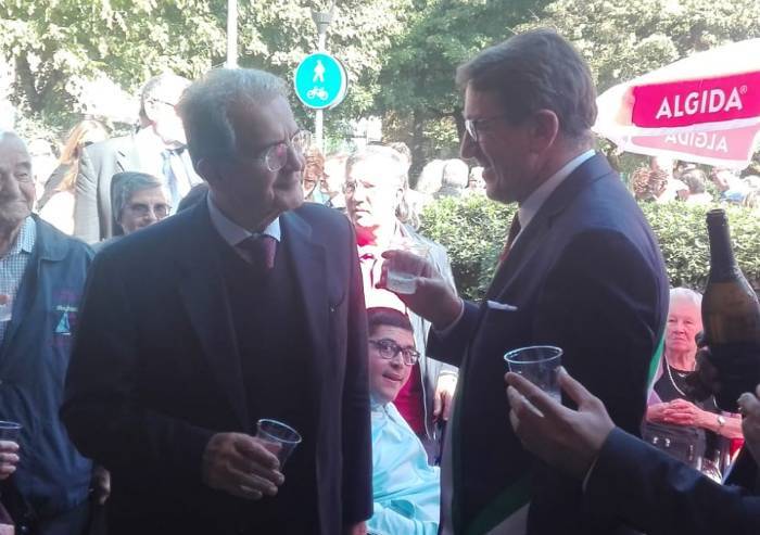 Un Prodi che riacquista il sorriso solo quando gli versano un po' di prosecco che alza al cielo nel bicchiere di plastica sorseggiandolo poi compiaciuto in compagnia del sindaco Muzzarelli, partecipando al taglio del nastro di un luogo per lui palesemente alieno: il bar arcobaleno del parco XXII aprile, di proprietà comunale e gestito dal Ceis, inaugurato anche nella sua nuova veste di Punto sociale e sicurezza del Comune. Segno di una partecipazione e di un coinvolgimento, dal basso che il centro sinistra ha perso, proprio dal basso, che non può avere il proprio riferimento nell'attuale Europa della finanza e dello spread, incapace di essere Europa politica e dei Popoli. Una idea sfumata, un sogno naufragato, che Prodi sembra rimpiangere nella desolazione e nella rassegnazione di ogni sua parola, e che disegna l'immagine di un uomo e di una fase politica lontana, anche con il ragionamento, dall'Italia. L'insistenza con cui conferma. a richiesta, di non volere parlare del Paese che ha governato, ne è l'emblema, almeno oggi. Allora di che cosa è venuto a parlare Prodi a Modena? 'Delle difficoltà e della crisi delle democrazia a livello globale. E' un problema grosso che riguarda tutto il mondo; un mondo che sta andando vero un autoritarismo che non si sognava nemmeno anni fa. Da est ad ovest tutti affidano il proprio destino nelle mani di una persona qualsiasi. E' un problema serio, che dobbiamo affrontare'.