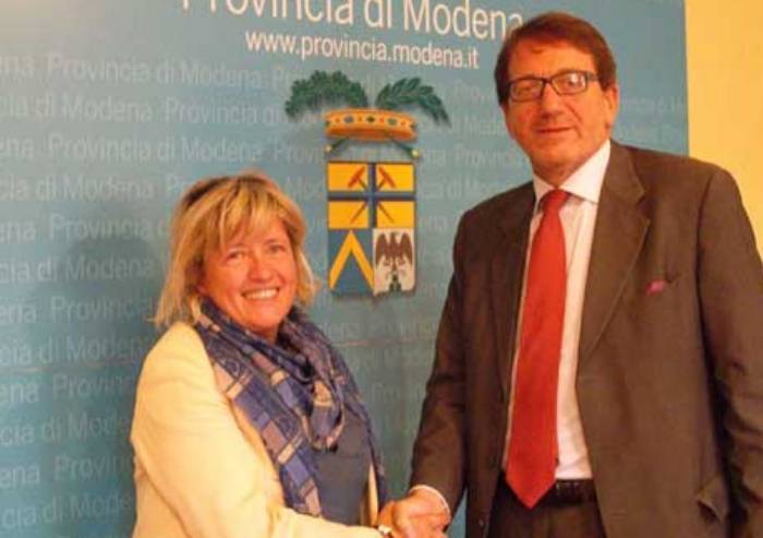 Nella foto, Maria Costi, sindaco di Formigine, attuale vicepresidente della Provincia, e Giancarlo Muzzarelli, Presidenza, entrambi non ricandidabili alla presidenza.