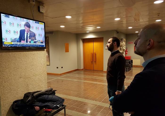 E la parola dimissioni arriva al piano nazionale a quello locale, soprattutto in una regione come l'Emilia-Romagna, roccaforte rossa non più rossa, dove alla segreteria del partito c'è Paolo Calvano che sconsolato guarda la conferenza stampa del leader (ormai ex) nazionale