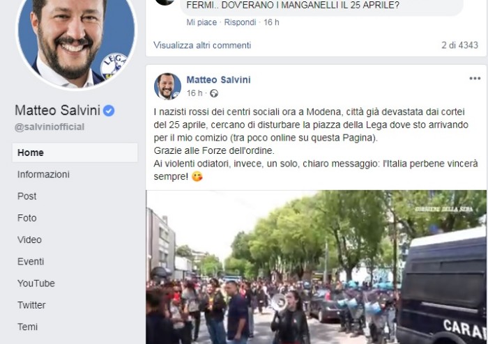 Cosìieri Matteo Salvini sulla sua pagina Facebook cercava non certo di stemperare i toni prima del suo arrivo a Modena