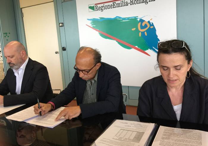 Nella foto Bonaccini e Petropulacos con l'ex assessore Venturi