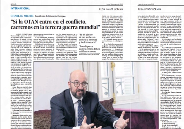 'L'Unione Europea non è in guerra con la Russia. Sosteniamo l'Ucraina con mezzi militari, umanitari e finanziari. Putin sta perdendo la battaglia della comunicazione. Volevo mostrare un conflitto latente tra la Russia e l'Unione Europea e la Nato. Nell'area del Pacifico, in America Latina, in Africa, si comprende sempre più che si tratta di una guerra di Putin, non di una guerra russa contro l'Ucraina. Le bugie, le favole per giustificare la guerra non hanno resistito. Si dice spesso che le democrazie sono deboli di fronte alla propaganda, ma le democrazie europee e i nostri partner hanno aperto gli occhi del mondo sulle vere ragioni di questa guerra'.