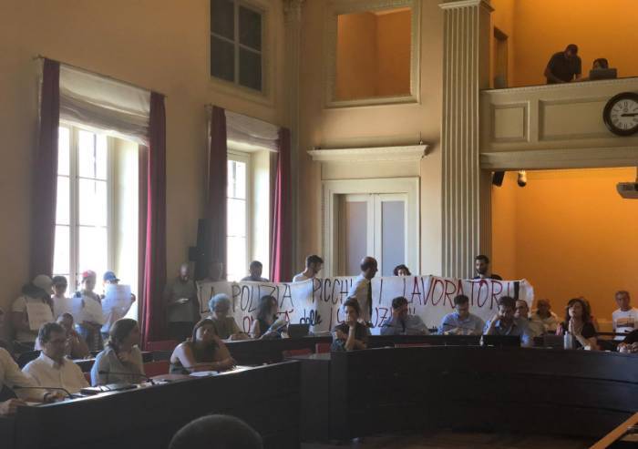 Seduta con protesta del Consiglio comunale di oggi: un gruppo di militanti del SiCobas hanno esposto uno striscione offensivo contro la polizia