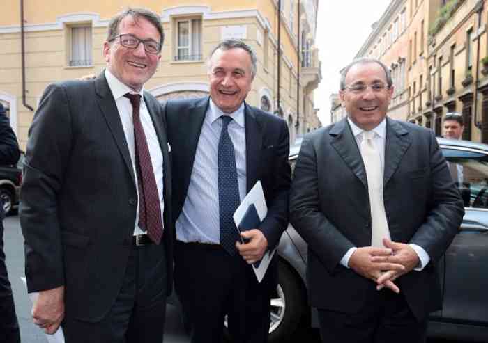 Nella foto: Il Sindaco Giancarlo Muzzarelli, il Vicesiministro Pubbico e l'ex Prefetto di Modena Di Bari dopo a firma del Patto, venerdì 29 luglio 2016