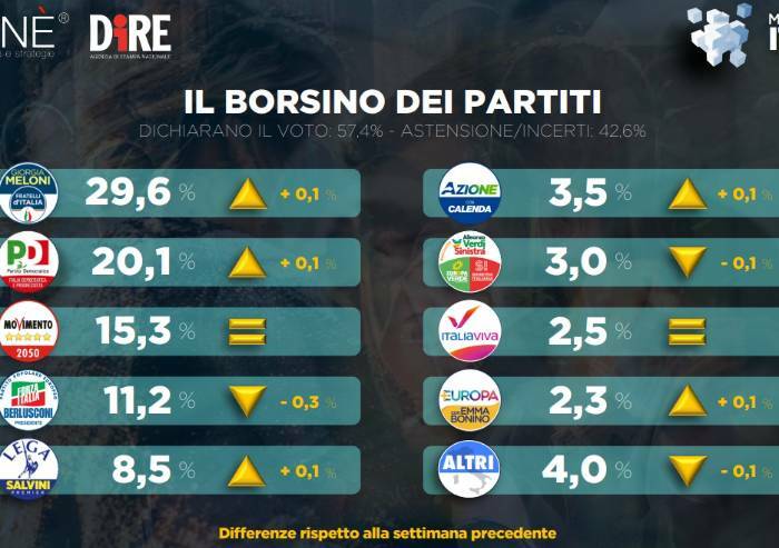 Sondaggio Dire: sale la fiducia nella Meloni e nel governo: Fdi cresce