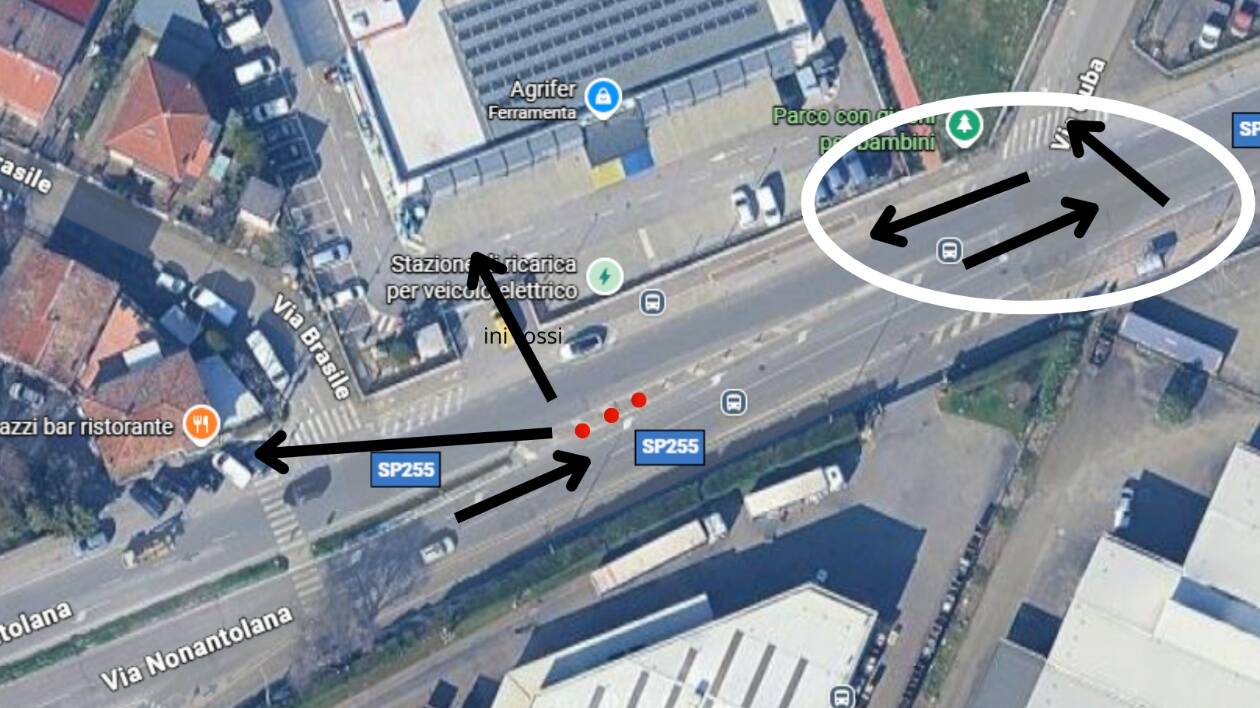 Una condotta che si ripete quotidianamente e che genera situazioni di grave pericolo. Non meno preoccupante è quanto accade poco più avanti, in prossimità di via Cuba, dove continuano a verificarsi inversioni azzardate lungo la via Nonantolana.Il rischio è amplificato dal fatto che, nonostante il limite di velocità fissato a 50 km/h, le auto percorrono quel tratto a velocità ben più elevate. A ciò si aggiunge un’assenza pressoché totale di controlli da parte delle forze dell’ordine, in particolare della Polizia Locale: proprio in un punto come questo, la presenza costante di pattuglie o di sistemi di controllo della velocità potrebbe avere un forte effetto deterrente e migliorare sensibilmente la sicurezza per residenti e lavoratori.Di fronte a questa situazione, appare evidente come l’area si presti alla realizzazione di una rotatoria. Lo spazio centrale che collega via Nonantolana con la zona industriale è ampio e consentirebbe un intervento relativamente semplice ma risolutivo. Una rotonda permetterebbe di ridurre in modo strutturale la velocità dei veicoli in arrivo sia dal centro città sia da Nonantola, faciliterebbe l’immissione su via Nonantolana del traffico proveniente da via dei Torrazzi — traffico rilevante vista la concentrazione di attività industriali — ed eliminerebbe definitivamente le pericolose inversioni di marcia.