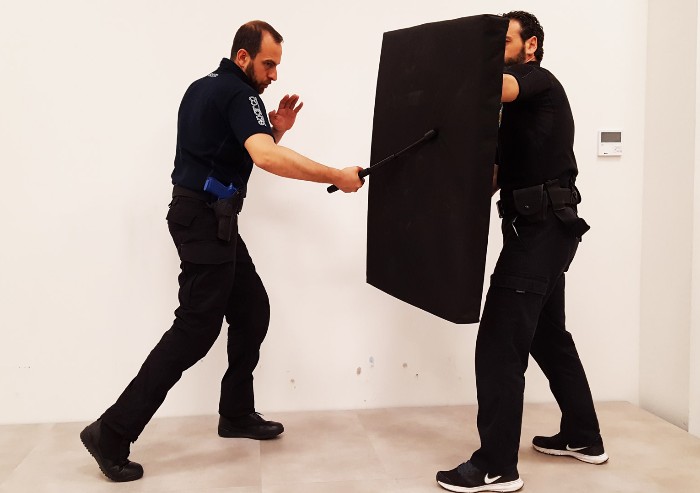 I vigili di Modena vennero dotati del bastone estensibile nel 2008, uno strumento che andò ad aggiungersi alla pistola e allo spray urticante. Il vecchio 'manganello' era realizzato in tecnopolimero, pesava 410 grammi ed era di colore bianco. Chiuso misurava 40 centimetri, esteso 60 centimetri.