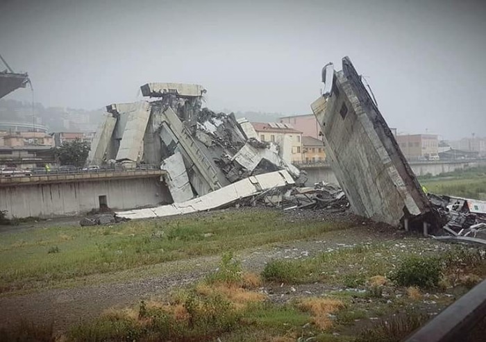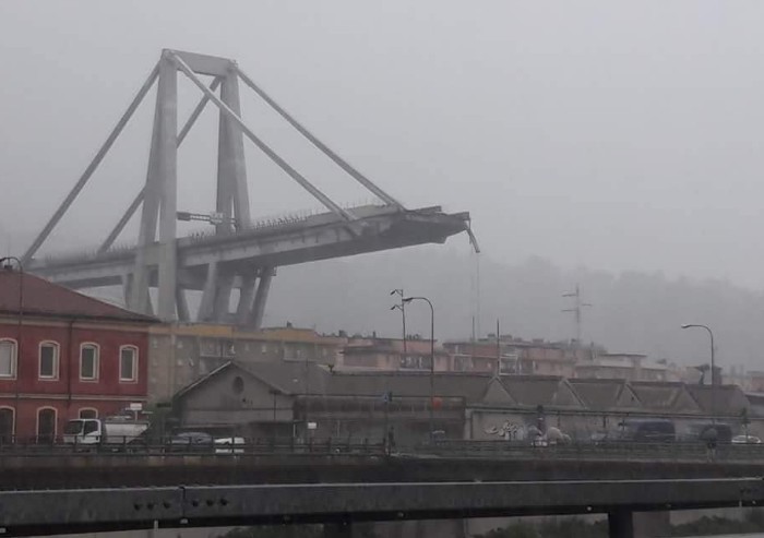 Sarebbero almeno 20 i morti nel crollo del ponte dell'autostrada A10 (ponte Morandi) che collega Genova a Savona e Ventimiglia. Un tratto del viadotto sospeso a diverse decine di metri si è abbattutto per un cedimento strutturale sull'abitato sottostante. Decine le auto che sarebbero precipitate. Entrambe le carreggiate sono precipitate al suolo per circa cento metri. Il ponte crollato ha travolto tra l'altro una parte di un capannone dell'Amiu, l'azienda ambientale del comune di Genova.