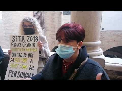 Piazza Grande è vietata, nell'aula consiliare non si può entrare e allora il gruppo di lavoratori trova spaio autorizzato nel ballatoio del Municipio antistante all'ingresso. Con tanto di cartelli. Per chiedere la revoca del contratto di appalto della società Holacheck, appaltatrice del servizio in virtù di un appalto Seta e accusata di non rispettare l'accordo di cambio di appalto del 2018 sull'utilizzo dei lavoratori. A loro detta, le condizioni, dopo le mobilitazioni di piazza, sono addirittura peggiorate. Come per coloro che subendo una riduzione del monte ore di lavoro hanno perso in busta circa 500 euro al mese passando dai 1500 ai 1000 circa. Insufficienti in molti casi a mantenere se stessi e le proprie famiglie, nel momento in cui magari c'è anche un affitto o un mutuo da pagare. Ed è così che tra i lavoratori, soprattutto donne, che oggi protestavano nuovamente per rivendicare posizioni e diritti acquisiti ma persi con il passaggio dal 2018 all'azienda che ha vinto l'appalto per la gestione delle biglietterie del trasporto pubblico urbano, c'è anche chi ha dovuto vendere la casa sulla quale pagava un mutuo, per l'impossibilità di continuare a pagare a seguito della riduzione del monte ore di lavoro e conseguentemente del netto in busta.