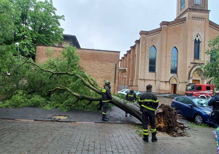 Un grande albero di circa 15 metri si è accasciato improvvisamente nel pomeriggio di oggi sul marciapiede di Piazzale Annibale Riccò, che circonda la scuola dell'infanzia parrocchiale Sant'Agnese, a Modena, battendo sul muro perimetrale. Fortunatamente nessuno in quel momento stava transitando. Almeno questo è quanto è stato accertato subito dopo gli attimi di paura per i passanti che hanno dato l'allarme. Prima il rumore del cedimento del legno, poi il tondo, a terra. Per i presenti attimi di paura per il dubbio che sotto il rigoglioso fogliame e i rami potesse essere rimasto schiacciato qualcuno su quel marciapiede dove sono soliti transitare bambini e genitori. Subito la verifica che non ci fosse nessuno e subito la chiamata alle forze dell'ordine. Sul posto, dopo qualche minuti, i Vigili del Fuoco che hanno circondato l'area. Tragedia sfiorata che ripropone anche il tema del taglio delle radici anche di alberi ad alto fusto che abbiamo in altre occasioni verificato in concomitanza con lavori stradali o di pavimentazione. Anche in questo caso, ma saranno i tecnici a confermarlo, la base dell'albero, in apparente buono stato, parrebbe priva del collegamento con le principali radici che più che strappate sembrerebbero tagliate da tempo. Ma il dato più importante ora è che il cedimento non abbia comportato nessuna conseguenza né su persone né su cose.