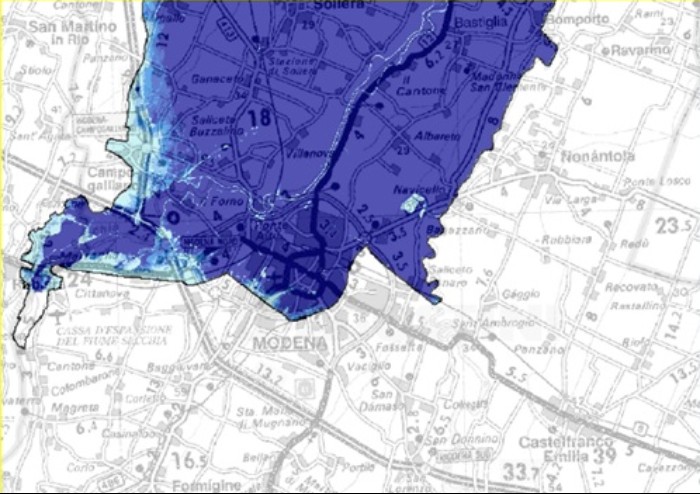 Analizzando le cartografie per quanto riguarda il progetto Bretella osserviamo che vengono proposti tre scenari alluvionali, con tre valutazioni possibili, alta, media e bassa probabilità dell’evento, gli stessi rappresentano il luogo all’interno del quale dovrebbe sorgere l’infrastruttura Bretella Campogalliano Sassuolo, del costo di circa 600 milioni di euro.