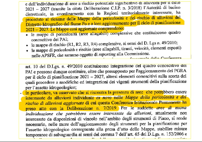 a lato fiume per 16 km, ma come sempre accade, un progetto vecchio di 30 anni si scontra inevitabilmente con norme nazionali e comunitarie che nel corso degli anni si sono succedute ed evolute, e di cui la Regione ER è depositaria e realizzatrice delle stesse per atto dovuto, e mai come in questo momento importanti. Il mantenere immutato il progetto, nonostante le norme succedutesi negli anni pare cosa non saggia e difficilmente applicabile.Il servizio difesa del suolo della Regione Emilia Romagna trasmette ai Comuni con la delibera 8/2019 le “Mappe della pericolosità da alluvione e le Mappe del rischio di alluvioni (art 1, obbligo alla divulgazione da dlgs comunitaria del 2007).