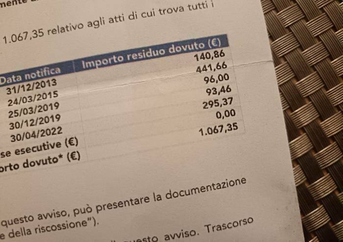 Una storia, quest'ultima, non certo isolata, considerando anche il fatto che di cartelle simili, soprattutto in concomitanza della loro scadenza utile per essere contestate e riscosse, i Comuni e gli enti di riscossione, ne stanno spedendo a raffica.