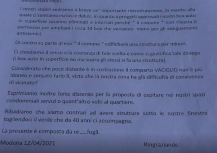 Il tutto nasce dalla previsione, svelata solo recentemente ai residenti, dalla Cooperativa Unicapi, e posta ormai come cosa fatta, di demolire l'intera stecca degli 80 garage di superficie per fare posto alle scale antismiche all'esterno dell'edificio, di realizzare altrettanti garage interrati, e di costruire, nella superficie liberata dai garage stessi, unita all'adiacente area verde, (vero e proprio parco con grandi alberi di pertinenza e ad uso dell'intera zona), strutture a disposizione del comune per l'accoglienza di minori con problematiche sociali e di integrazione.