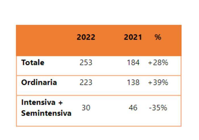 Un anno fa, 4 febbraio 2021, i ricoverati erano 184 totali, dei quali 138 in ordinaria e 46 tra intensiva e semi intensiva. L'aumento complessivo rispetto all'anno scorso è dunque del 28%.