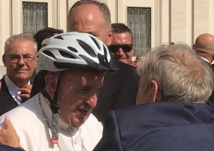 'Grazie al fondamentale appoggio del vescovo Zuppi, abbiamo potuto informare il Prefetto della Casa Pontificia, Georg Ganswein, della nostra campagna e del desiderio di poter omaggiare il Santo Padre di un caschetto, perché potesse risuonare con la sua mirabile forza il messaggio che indossare il caschetto in bici salva i nostri figli in caso di impatto - afferma il bolognese Mauro Sorbi, presidente Osservatorio l'educazione alla sicurezza stradale -. Papa Francesco ha dimostrato la sua immensa sensibilità e ci ha donato questo scatto e rinnoviamo infinitamente i nostri ringraziamenti'.