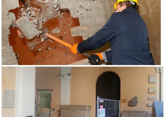 Apprendiamo infatti che ci sono voluti quasi due mesi di confronto e di procedure per avere l'autorizzazione della Soprintendenza a rimuovere, con appositi mezzi, il pesante e delicato sarcofago romano che vi era appoggiato e a smontare le altrettanto delicate lapidi installate in quella parete che sarebbe stata abbatuta.