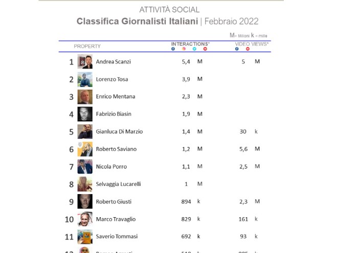 Al nono posto nella classifica italiana dei giornalisti social si piazza un modenese. Si tratta di Robby Giusti che scavalca il direttore del Fatto quotidiano Marco Travaglio. In base alla classifica, realizzata da Sensemakers su dati Shareablee in collaborazione con Prima Comunicazione (qui l'articolo), al primo posto si piazza Scanzi che precede Lorenzo Tosa, direttore di Next Quotidiano, ed Enrico Mentana. 'Va segnalato l’ingresso di tre nuovi volti all’interno del ranking. Roberto Giusti sale in nona posizione grazie ai contenuti pubblicati su Facebook attraverso i quali sostiene Gianluigi Paragone nella discussione sul Greenpass' - sottolinea Prima comunicazione.