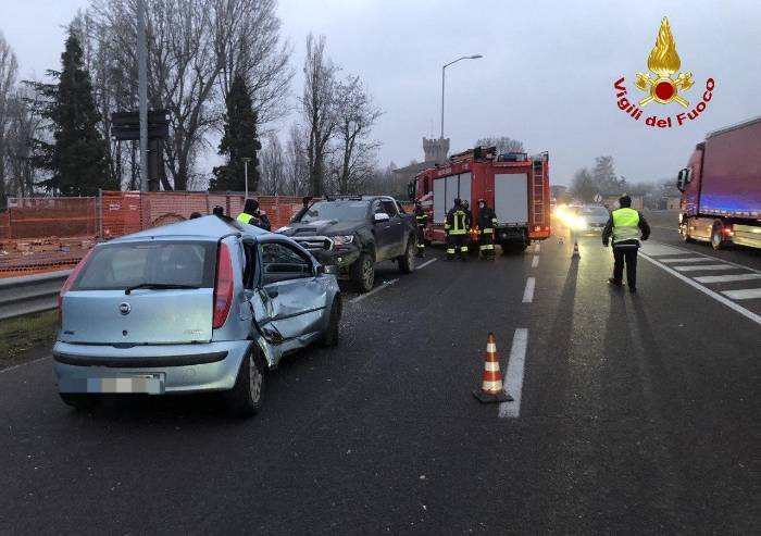 I Vigili del fuoco hanno estratto la donna ferita dall'abitacolo di una delle due auto coinvolte nello scontro e liberato la strada dai mezzi incidentati, consentendo la circolazione almeno su una corsia a quell'ora particolarmente trafficata, e la Polizia Locale ha effettuato i rilievi di legge. Il bilancio dello scontro tra due auto avvenuto questa mattina poco dopo le ore 7 sulla Strada Statale Nuova Estense, alle porte di Modena, all'altezza della rotatoria che immette sulla Contrada, è di una donna ferita e pesanti ripercussioni sulla viabilità anche sulla Nuova Estense, per i mezzi provenienti da Montale e la montagna in direzione Modena. La circolazione è stata ridotta ad una corsia dove il traffico è stato concentrato a senso alternato.