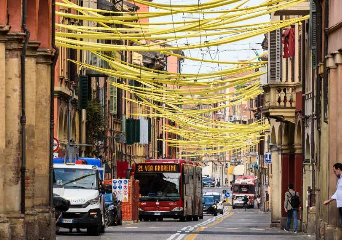 E per salutare l’arrivo del Tour, Bologna si è vestita a festa.