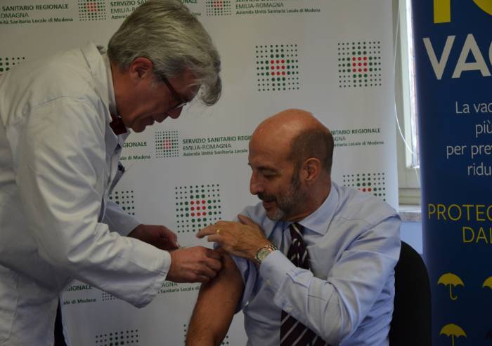 Anche il Direttore Generale dell'Ausl di Modena, Massimo Annicchiarico ha scelto di farsi fotografare nell'atto della vaccinazione antifluenzale. Per testimoniare l'importanza di farlo. Messaggio ribadito oggi dalla stessa Ausl nella presentazione ufficiale della campagna di vaccinazione antinfluenzale gratuita al via dal 5 novembre e dedicata soprattutto per le persone più fragili, tra cui anziani, adulti con più di 65 anni, bambini e pazienti con patologie croniche, donne in gravidanza e operatori sanitari e socio-sanitari.