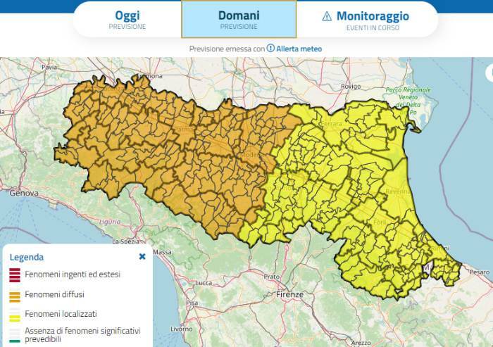 'Nelle zone collinari e montane centro-occidentali saranno possibili fenomeni franosi sui versanti caratterizzati da condizioni idrogeologiche particolarmente fragili, anche a seguito delle precipitazioni dei giorni precedenti. Inoltre, su tutto il territorio regionale, non si escludono occasionali fenomeni franosi, ruscellamento sui versanti e rapidi innalzamenti dei livelli idrometrici nei corsi d’acqua minori associati ai fenomeni temporaleschi'.