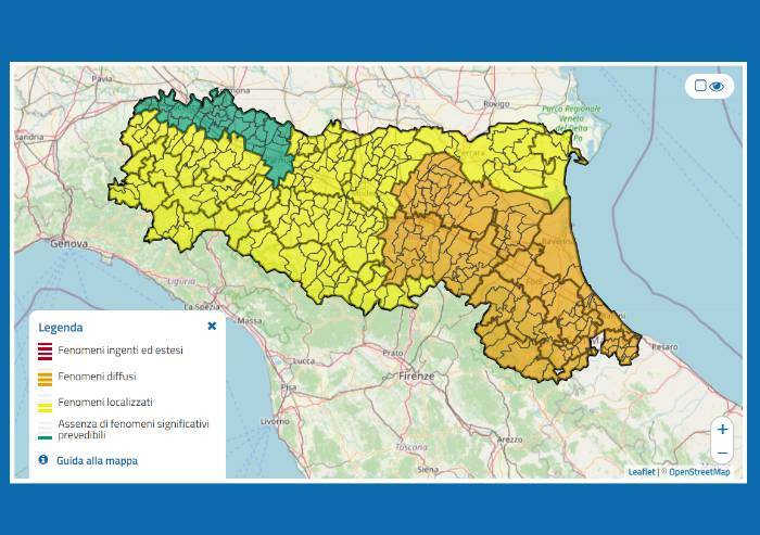 Secondo il bollettino emesso dall‘Agenzia per la sicurezza territoriale e la protezione civile sulla base dei dati previsionali Arpae (Agenzia regionale prevenzione, ambiente ed energia), in particolare sono previste precipitazioni intense, anche a carattere di rovescio, più probabili sul settore centro-orientale che potranno generare nelle zone montane e collinari fenomeni franosi, ruscellamenti sui versanti e innalzamenti dei livelli idrometrici dei corsi d’acqua del settore centro-orientale, con occupazione delle zone di naturale espansione nei tratti montani e delle aree golenali nei tratti vallivi e con interessamento degli argini.