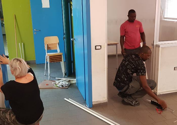 Domani e domenica genitori e richiedenti asilo coordinati si trovano per tinteggiare la scuola primaria Montecuccoli di Baggiovara con il coordinamento del Comitato Genitori e il coinvolgimento dell’Istituto Comprensivo 7. 'L’obiettivo comune è consegnare ad alunni, docenti e personale scolastico ambienti riqualificati e più belli in vista dell’avvio del nuovo anno scolastico - si legge in una nota del Comune -. I preparativi sono iniziati lo scorso fine settimana quando, nelle giornate di sabato e domenica, sette richiedenti asilo ospiti dei Centri di accoglienza straordinaria Caleidos e Porta Aperta hanno supportato una ventina di genitori iscritti all'albo dei cittadini attivi nella preparazione delle aule e nelle prime operazioni di tinteggiatura dei locali dell’edificio scolastico di stradello Fossa Buracchione. Per il gruppo di giovani provenienti da Mali, Ghana, Marocco e Pakistan è stata anche l’occasione per interagire con i genitori, far conoscere le loro storie personali, oltre che di dimostrare le competenze da imbianchini che diversi di loro hanno maturato durante le ormai innumerevoli attività di volontariato che li hanno visti impegnati nell’ultimo anno. L’iniziativa s’inserisce tra quelle promosse da varie associazioni di volontariato insieme all’assessorato alle politiche sociali del Comune di Modena nell’ambito dell’accordo sul volontariato dei richiedenti asilo sottoscritto con Prefettura, Diocesi, Terzo settore e Csv'.