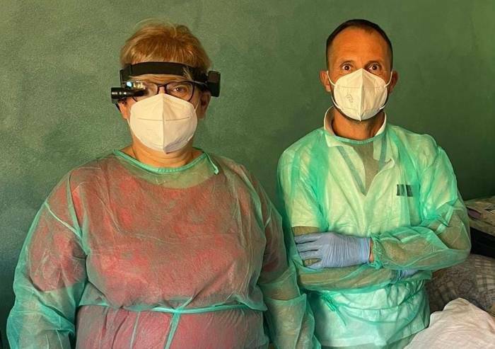 A casa della donna si sono recati Marina Martini, infermiera specialista dell’Endoscopia, e Stefano Gennari, infermiere della Domiciliare che assiste da tempo la 78enne: indossando gli speciali occhiali intelligenti l’infermiera si è tenuta in collegamento audio/video con un medico dell’Endoscopia Digestiva, che da remoto, dal monitor di un computer, ha potuto vedere l’intera operazione e apportare i propri suggerimenti, per altro visibili sul visore degli occhiali indossati dall’infermiera specialista.