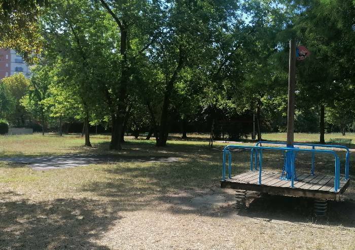 Che anziché espandersi è sparito come una isola che non c'è, o meglio vive solo nella fantasia. Un altro elemento con un albero vela e una piattaforma su molle perde pezzi ed è praticamente inutilizzabile. Unico elemento in mezzo al nulla. Qua e là spiccano cavallini con base a molle ma immersi nell'erba alta e negli arbusti. Inutilizzabili oltre che quasi invisibili. Le panchine in legno usurato dal tempo e dalla mancata manutenzione, perdono pezzi in più punti. Così come i tavoli e le sedute. I rifiuti non raccolti di chi qui fa scorribande la sera in un angolo di refrigerio non mancano. E il degrado, l'abbandono e l'incuria della mano pubblica generano degrado. Le famiglie con bambini lo frequentano sempre meno. Anche perché le attrezzature per bambini praticamente non esistono più. Nella seconda parte del sabato mattina lo visitiamo. Nessun bambino, nemmeno in lontananza. 'Qui fino a qualche tempo fa, con i giochi, era tutta un'altra cosa. E' veramente desolante vederlo così' - afferma la residente madre dei due bambini che ci ha segnalato la situazione. 'Speriamo che qualcosa venga fatto per riportare questa area verde almeno alle condizioni in cui era'