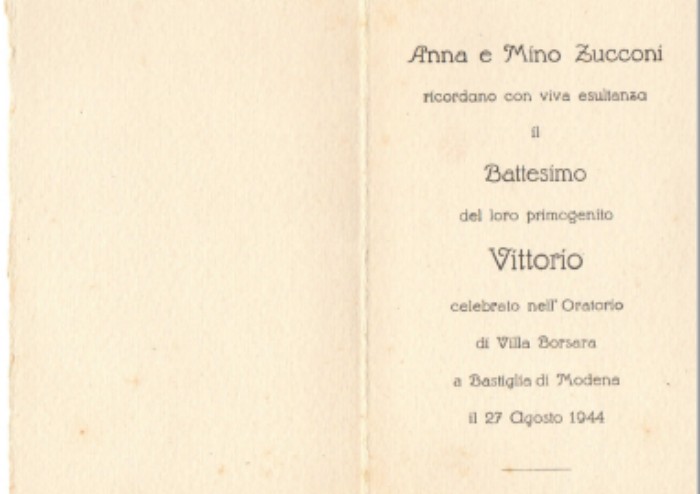 Il certificato di battesimo di Zucconi, nato a Bastiglia il 16 agosto del 44 e battezzato 11 giorni dopo in una piccola cappella di campagna ancor oggi presente