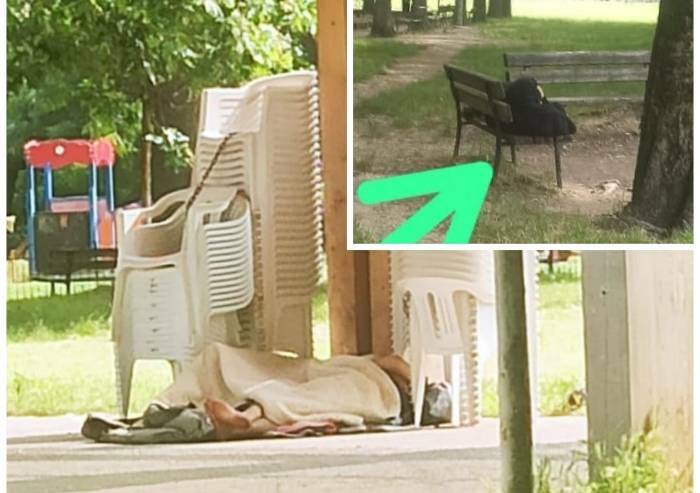 Parco XXII aprile, ore 10 della mattina. Molte aree che potrebbero essere vissute e godute da cittadini comuni, sono ancora occupate da stranieri senza fissa dimora che in bivacchi improvvisati hanno trascorso lì la notte. La parte più gettonata anche da coloro che in quell'area ci hanno trascorso una giornata e una serata di spaccio, quella riparata dalla struttura progettata da Renzo Piano finanziata nell'ambito di quella che doveva essere la riqualificazione del Parco. Non a caso quella parte del progetto di riqualificazione, si chiama 'Riparo', padiglione volto ad accogliere le attività delle associazioni che animano il quartiere. Purtroppo a trovare riparo sia di giorno sia di notte, sono soprattutto gli spacciatori o comunque gruppi di stranieri che accompagnano la loro attività con bivacchi e bevute. Di cui Hera, alla mattina presto, rimuove a fatica le tracce. Ma è la presenza di persone che dormono e di sempre più evidenti e diffusi bivacchi, che rende di fatto impraticabili le aree, compresa appunto quella che dovrebbe fornire uno momento di pausa, e di relax, all'ombra visto che a disposizione, sotto quella struttura ci sono anche le sedie oltre che sedute fisse. Questa mattina nuove segnalazioni dello stesso tipo e che abbiamo verificato. Le immagini che abbiamo pubblicato si riferiscono a questa mattina, poco prima delle ore 10. 'Veramente un peccato - afferma chi ci ha segnalato il problema - soprattutto in considerazione del fatto che con i ragazzi a casa da scuola, il parco potrebbe essere vissuto meglio anche di mattina. Ma se fino alle 10 le aree sono occupate da persone che dormono in bivacchi, a pochi metri dai giochi, è molto difficile farlo'.